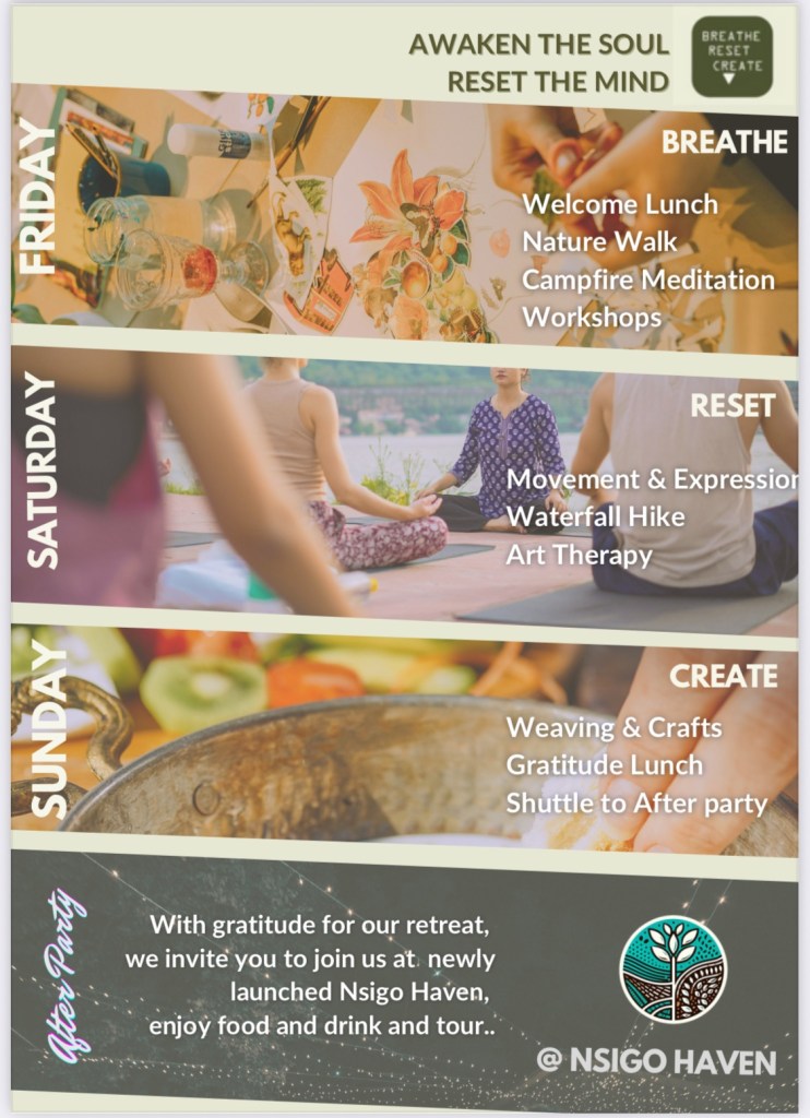 BREATHE. RESET. CREATE is an art retreat that offers a unique and immersive creative experience in harmony with nature. Our vision is to build a peaceful, inspiring space where artists, art- enthusiasts and creatives reconnect with themselves, share meaningful connections, and nurture their well-being. Through art, community, and nature, we aim to awaken the soul, reset the mind, and spark authentic creation. 💚